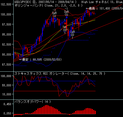 第1支持水準: 99円85銭:4月13日安値