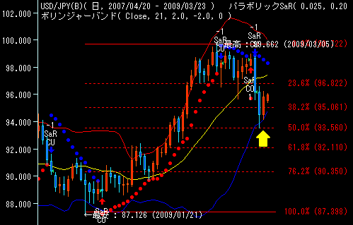 第2抵抗水準:96円61銭:3月19日高値