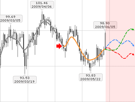 第2抵抗水準:98円56銭:6月9日高値